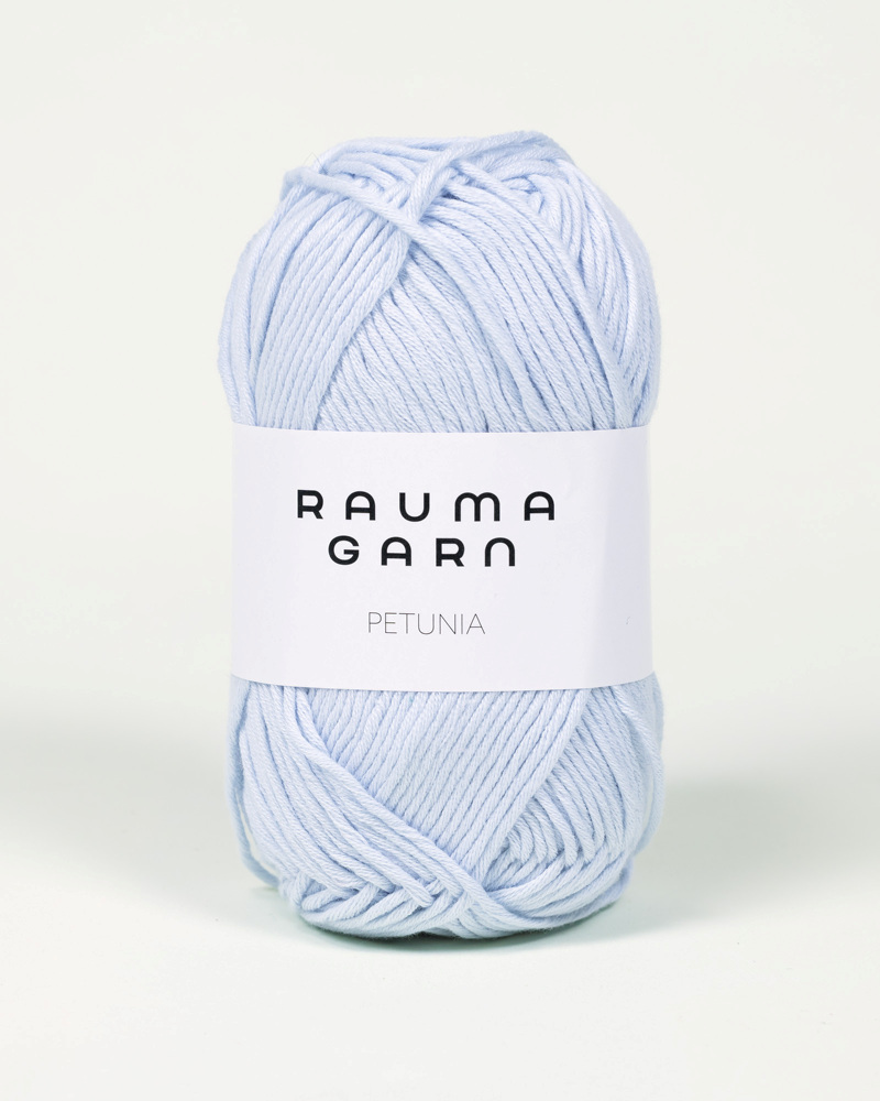 Petunia er et garn i 100% pima bomull, som er en av verdens fineste bomullsfibre. Det holder seg godt i bruk og kan vaskes i maskin. Petunia gir myke plagg som er behagelige å ha på. Petunia gjør seg godt både til plagg i sommergarderoben, og tilbehør som kurver, vesker og kluter. Egner seg til hekling.